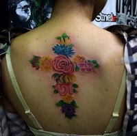 Cross with flowers tattoos