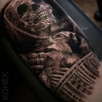 Gorgeous looking detailed biceps tattoo of old mummy