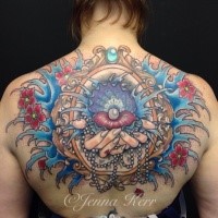 Large painted by Jenna Kerr upper back tattoo of fantastic butterfly